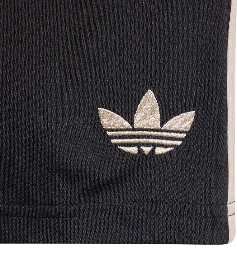 Lækre adidas Originals shorts i sort med hvide detaljer, og nederst på højre bukseben sidder der et logo fra den tyske fodboldklub FC Bayern München. Shortsene er inspireret af holdets 3. sæt i sæsonen 25/26.