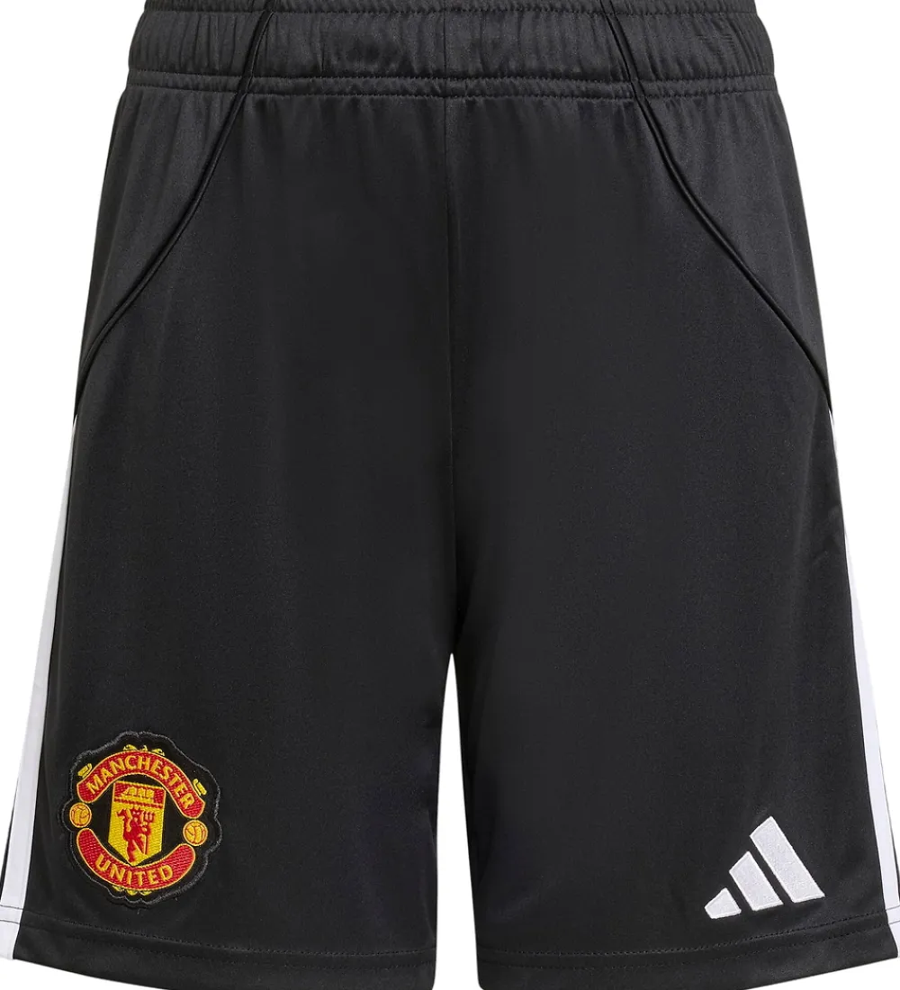 Stilfulde adidas Performance shorts i sort med et ikonisk Manchester United-emblem på det ene ben. Shortsene har en elastisk talje, som justeres med indvendige snører og et gennemgående hvidt stripe-design langs siderne. Shortsene er lavet i en Aeroready-kvalitet, som absorberer vand og sved, så man føler sig tør mens man dyrker sport.