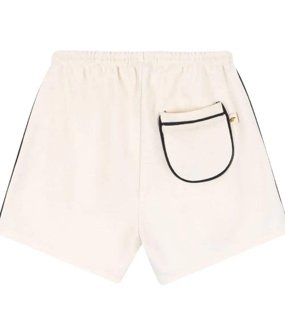 Stilrene Konges Sløjd shorts i en blød, cremefarvet nuance. Konges Sløjd shortsene er designet med en behagelig elastisk talje og har en enkel bindesnøre for justerbar pasform.