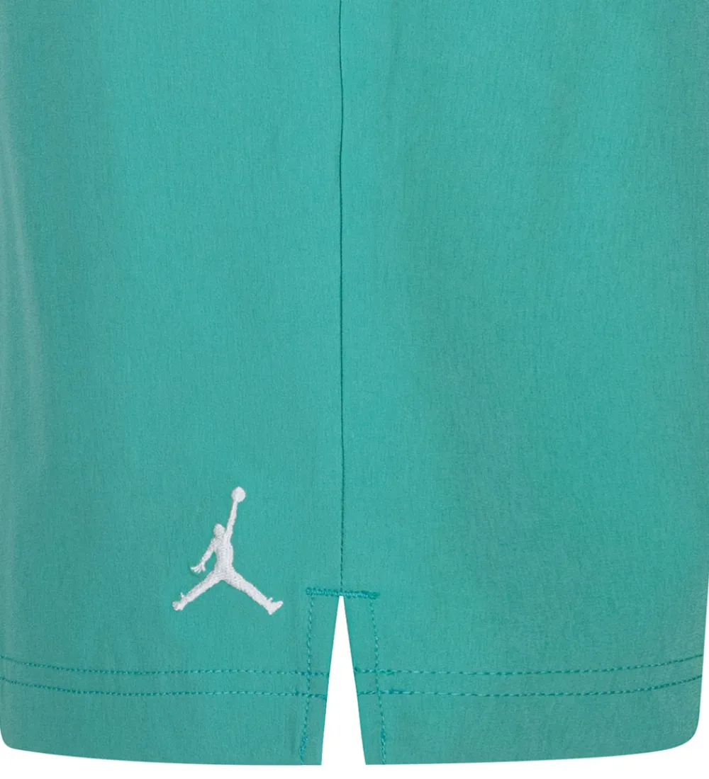 Smarte Jordan shorts i en frisk turkis farve og med et hvidt jumpman-logo broderet på venstre ben. Jordan shortsene har korte ben med slids i hver side og en praktisk elastisk talje med justerbar snøre fortil samt åbne forlommer. Shortsene fra Jordan består af to lag, hvor det inderste er i mesh.