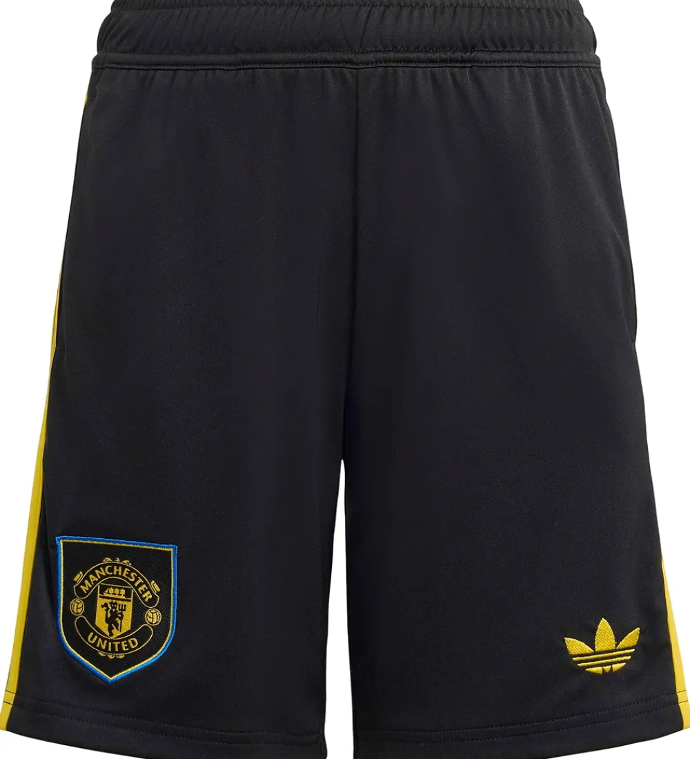 Stilfulde adidas Originals shorts i en dyb sort nuance med smarte gule detaljer i siderne. Shortsene prydes af et synligt Manchester United logo på det ene ben samt adidas Originals logoet på det andet. Adidas Originals shortsene har en elastisk talje med indvendige snører, der sikrer en passende pasform.