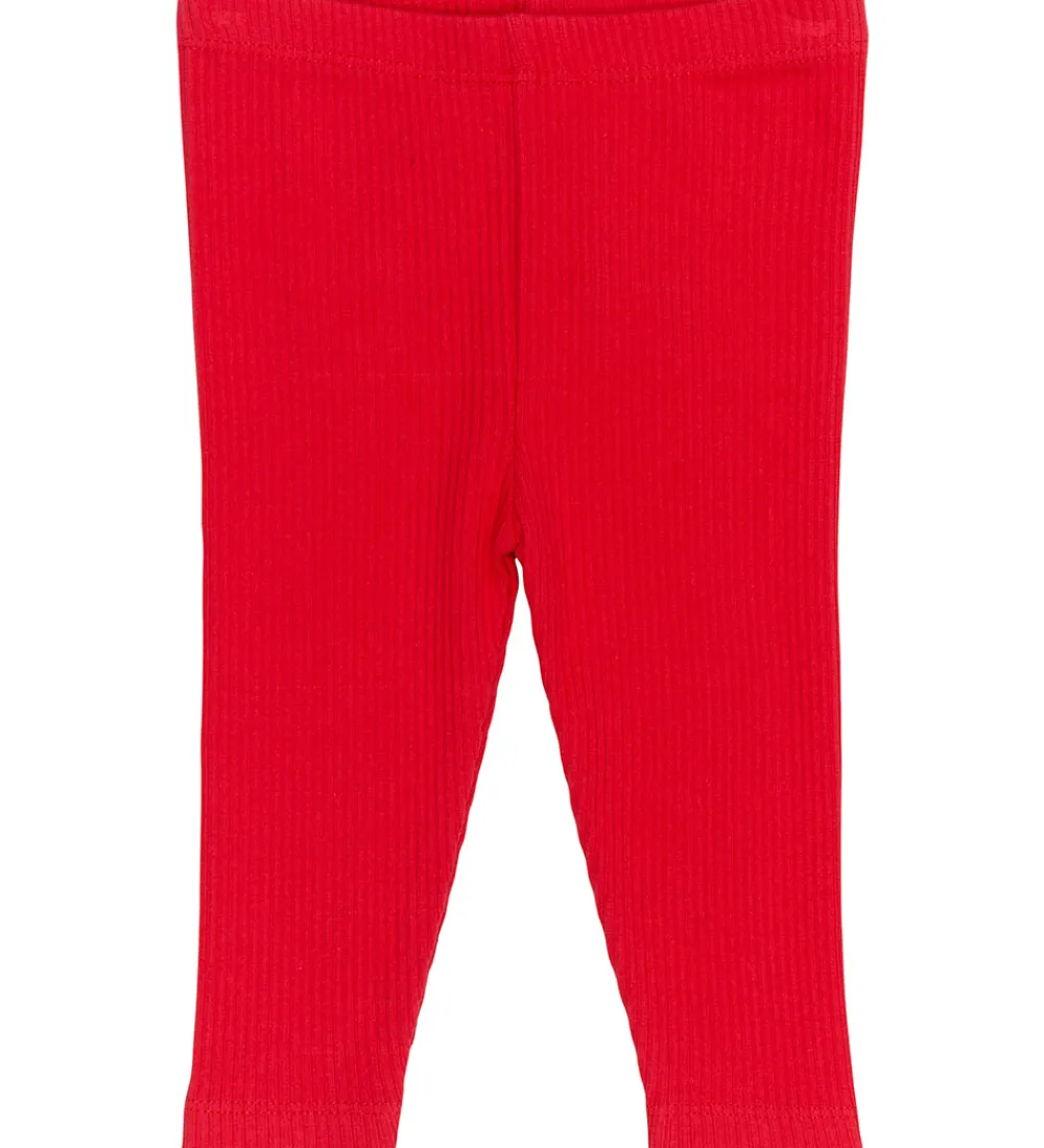 Stilfulde The New Siblings leggings i en klar, rød farve med ribstruktur. The New Siblings leggingsene har en elastisk talje for en behagelig pasform.