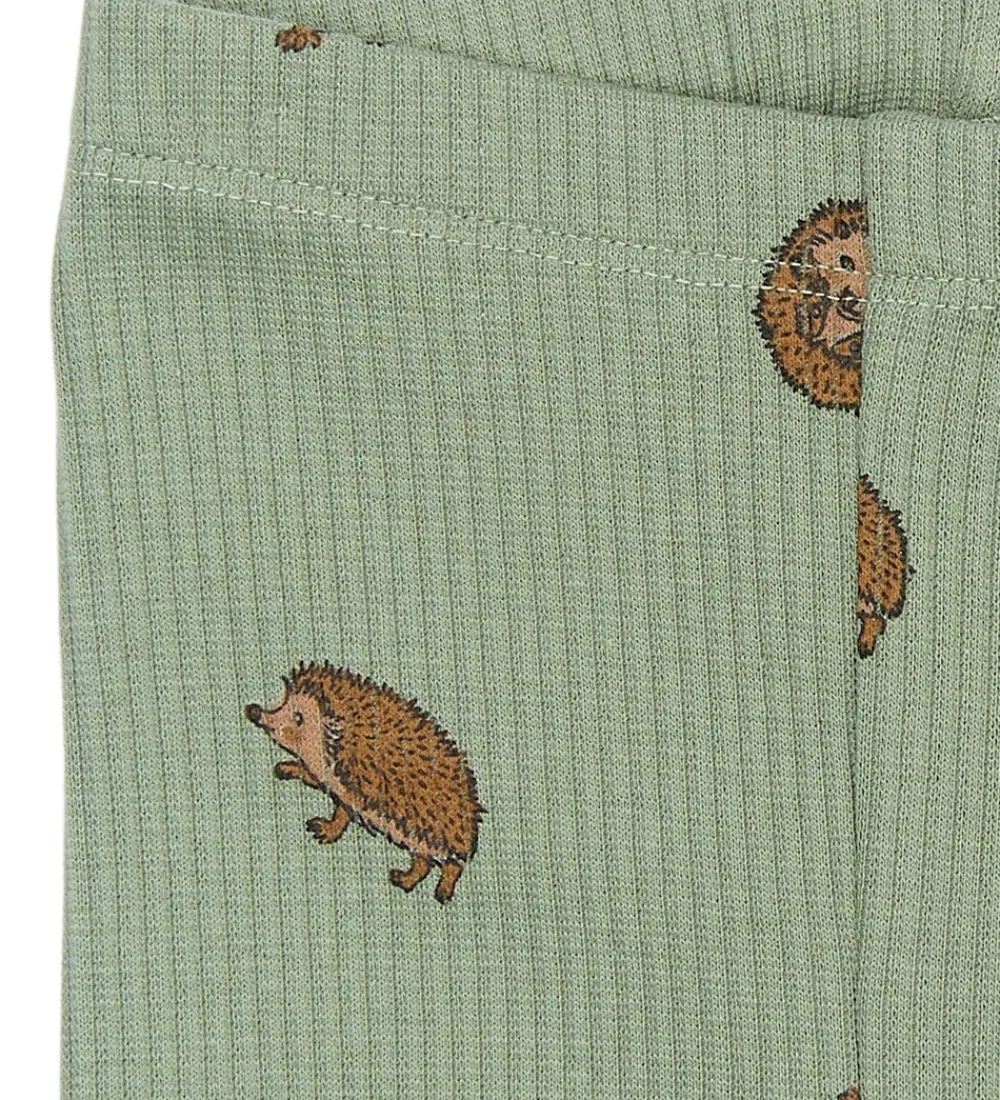 Skønne The New Siblings leggings i en afdæmpet, grøn farve med et yndigt print af små pindsvin. The New Siblings leggingsene har en ribstruktur og en elastisk talje for en god pasform.