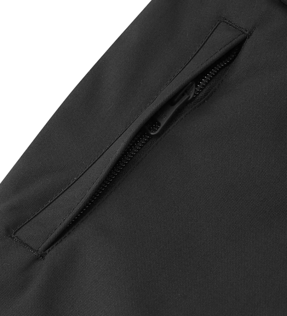 Skibukserne kan åbnes fortil ved hjælp af en lynlås fra halsen til livet. I livet er der elastikkant og bæltestropper, mens der i siderne er forlommer med lynlås I benåbningerne er skibukserne forsynede med praktiske snefang, der har gummibelægning samt trykknapper for justering og fastgørelse. Skibukserne er vatterede, og indvendigt har de et glatvævet for.