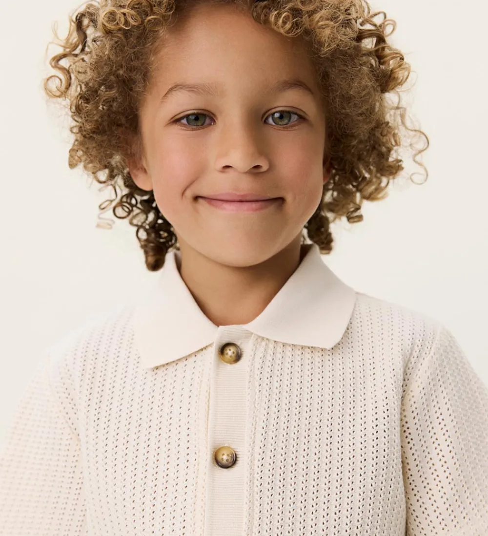 Elegant Les Deux skjorte i strikket kvalitet med korte ærmer i råhvid nuance og stilfulde knapper på fronten. Les Deux skjorten er velegnet til dem, der sætter pris på et enkelt og pænt design.