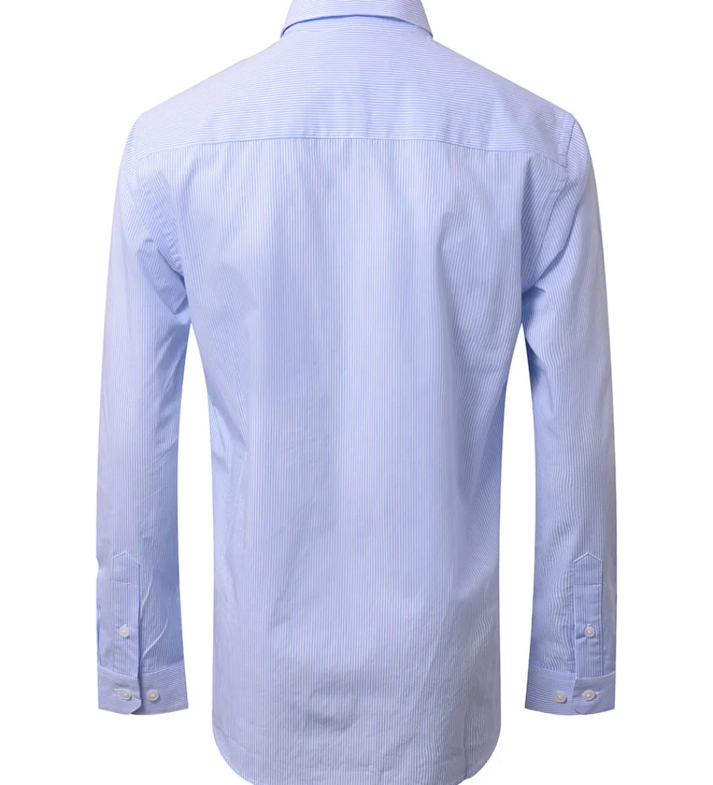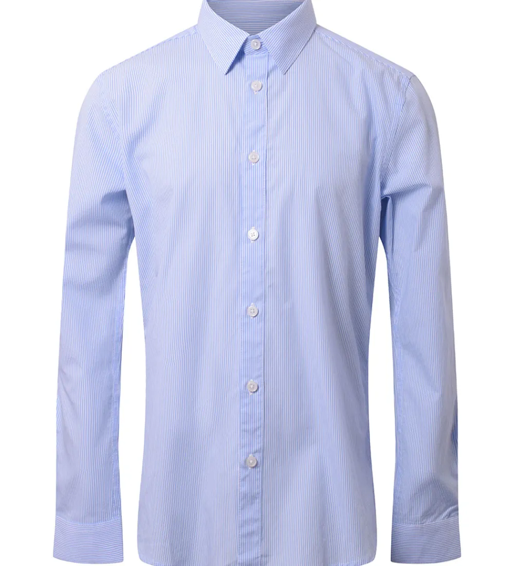 Flot Hound skjorte med smalle, lodrette striber i lyseblå og hvid.