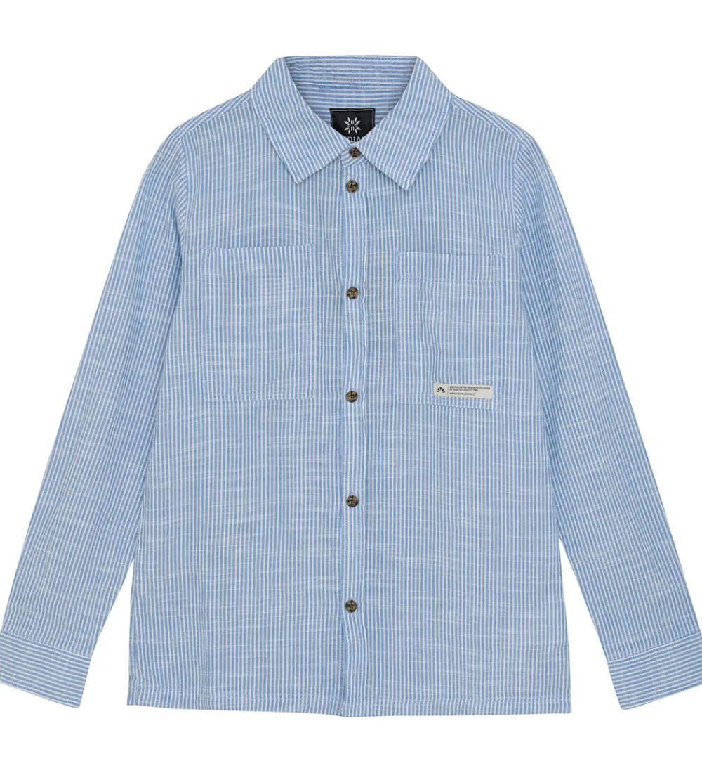 Lækker Indian Blue Jeans skjorte med smalle, lodrette striber i blå og hvid. Skjorten har lange ærmer og to brystlommer, hvilket giver et stilfuldt og praktisk udtryk. Skjorten åbnes med brune knapper.