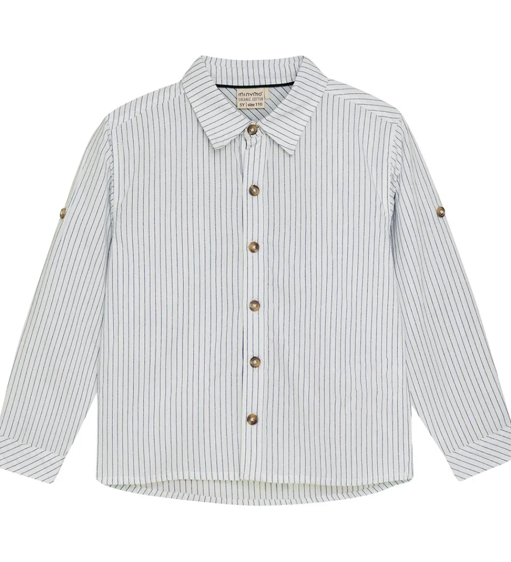 Elegant Minymo skjorte med lange ærmer i hvid med fine striber. Skjorten har knapper fortil og vil give et stilfuldt touch til ethvert outfit. Minymo sikrer komfort hele dagen.