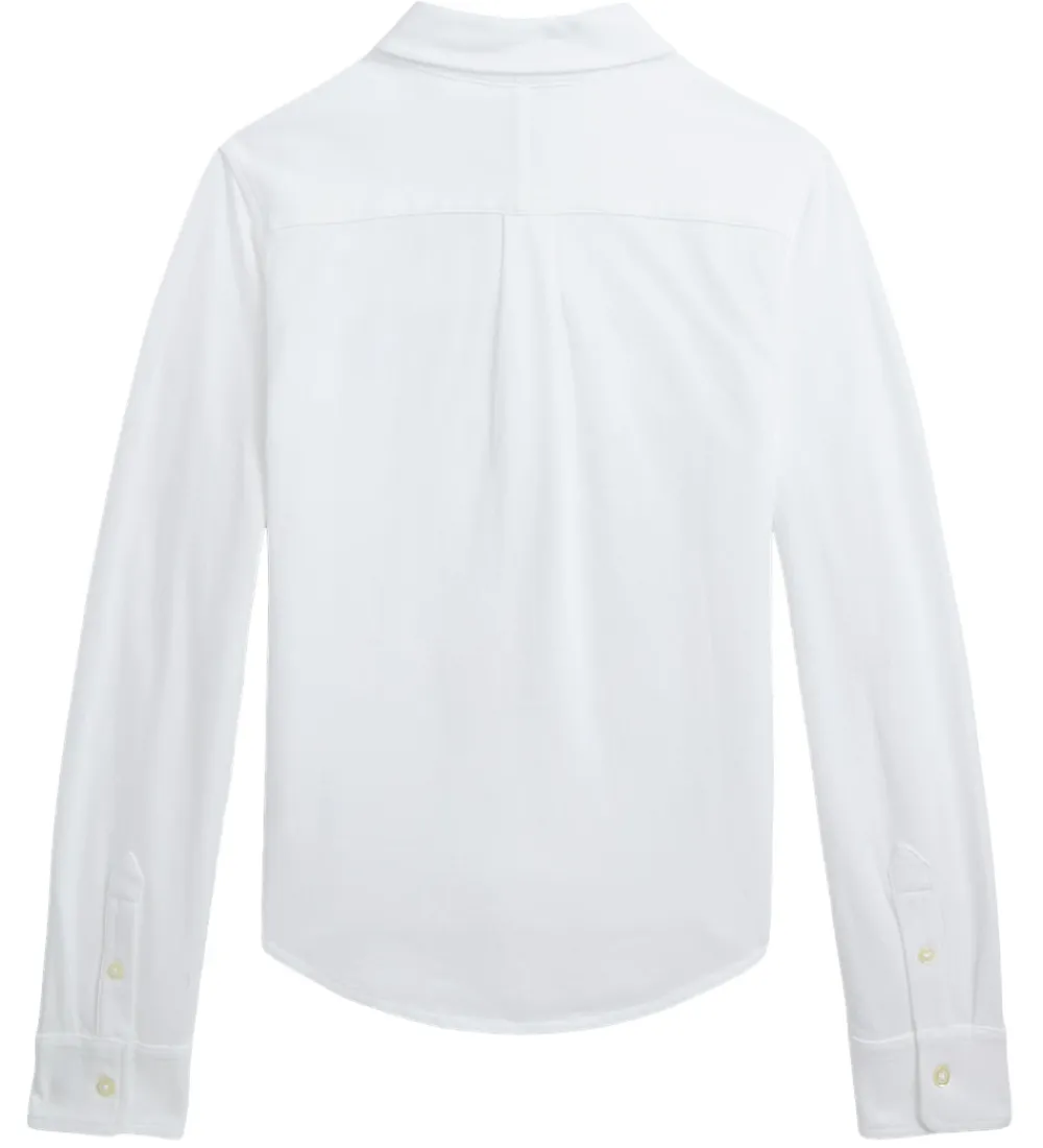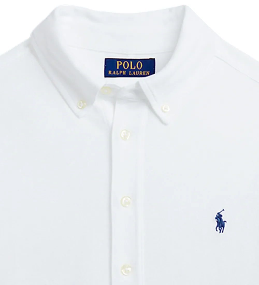 Flot Polo Ralph Lauren skjorte i hvid piqué, og fortil i venstre side er der broderet et lille, navy logo.