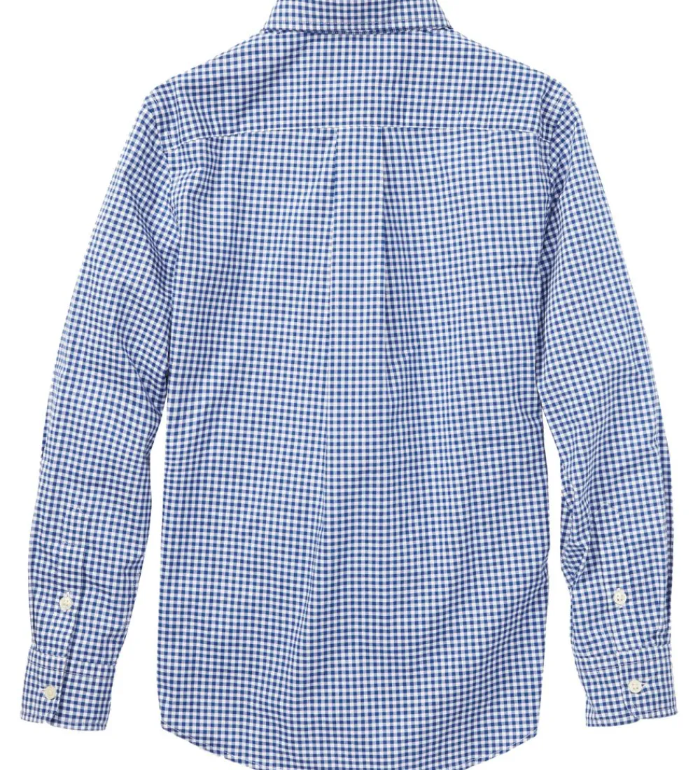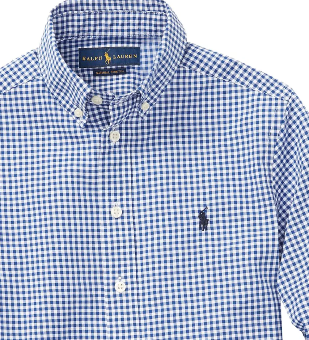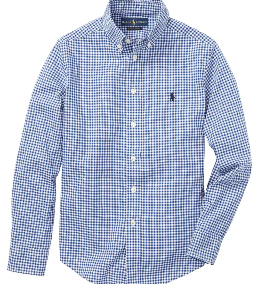 Flot Polo Ralph Lauren skjorte med tern i blå og hvid og med et lille, navy logo broderet i venstre side.