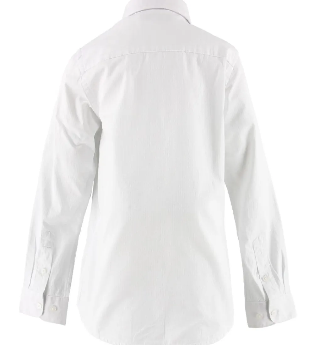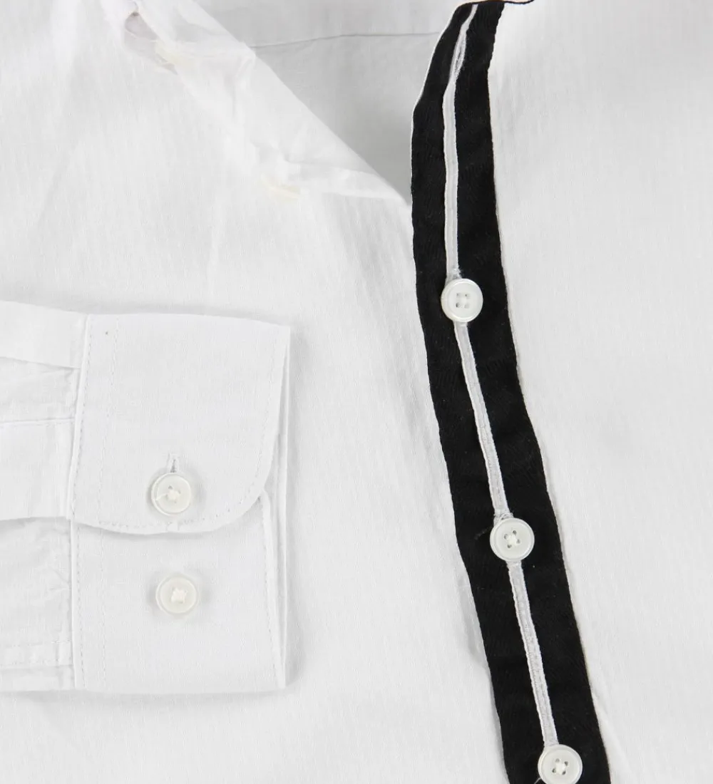 Skøn Hound skjorte i hvid med et fint strukturmønster, og en sort og hvid stribe ned langs skjorteåbningen.