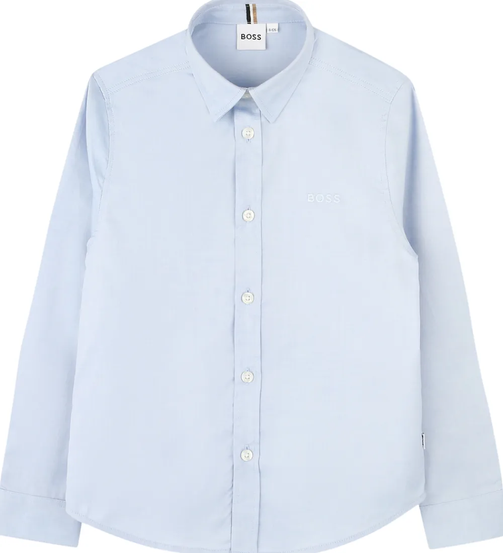 Stilren BOSS skjorte med lange ærmer i en lys blå nuance og i en fastvævet kvalitet. Skjorten har en klassisk krave og gennemgående knapper samt et diskret BOSS logo på brystet.