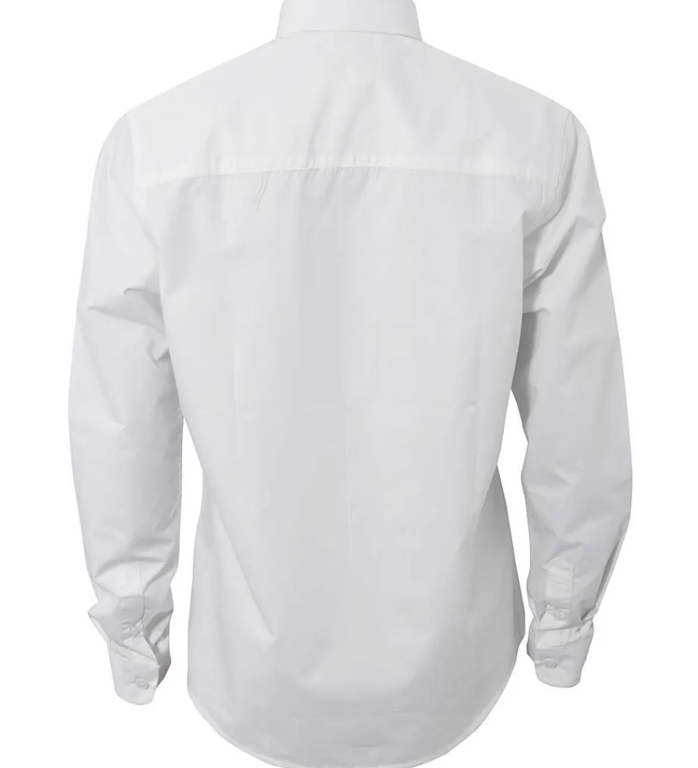 Hound skjorten har en klassisk krave og lange ærmer med brede kanter samt to manchetknapper. Den åbnes fortil med gennemgående, hvide knapper.