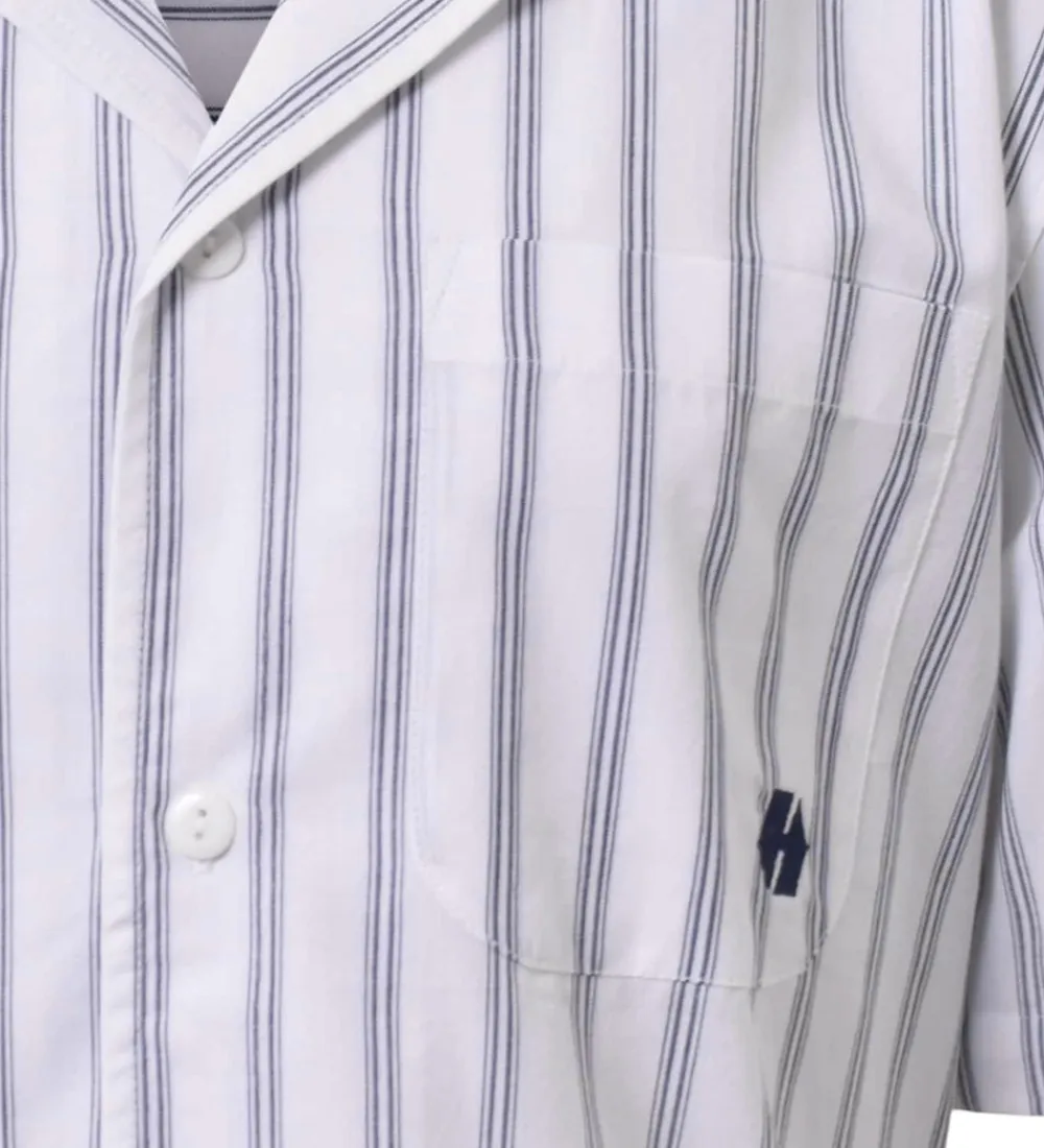 Hound skjorten har korte ærmer, og i halsåbningen er der en V-udskæring med krave. Der er en brystlomme med broderet “H” i venstre side fortil og på fronten er der en gennemgående knaplukning.