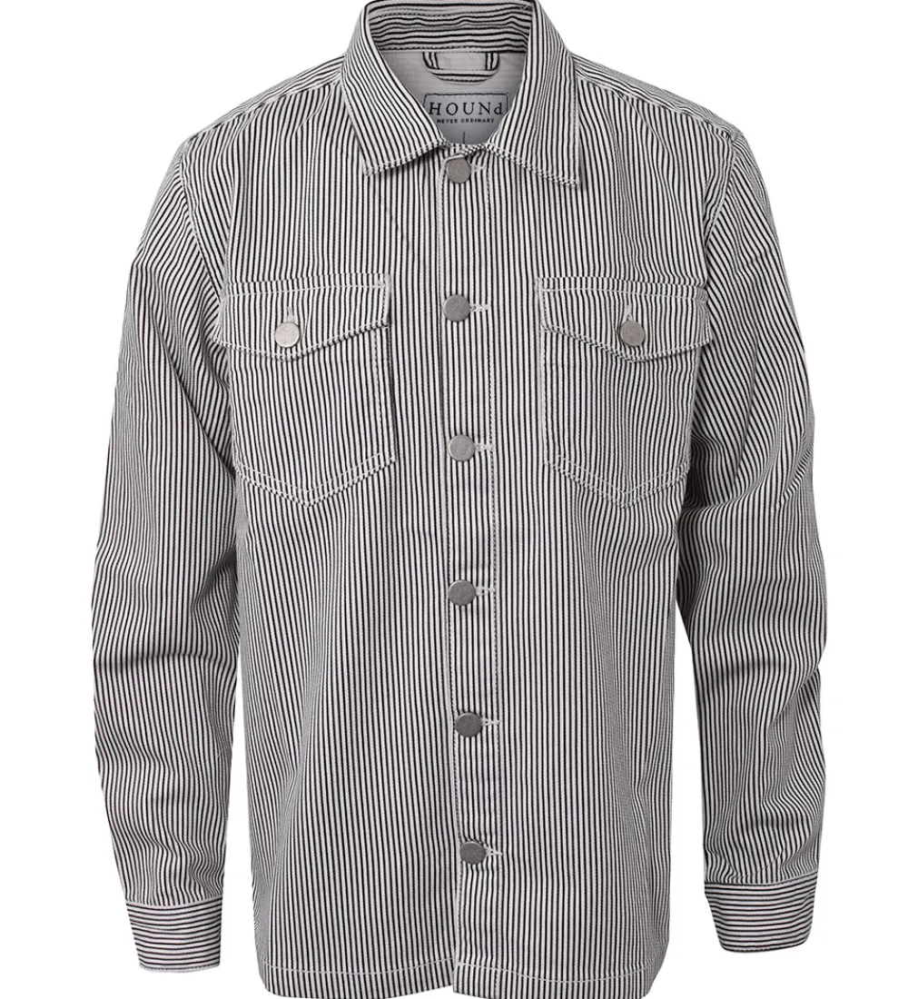 Stilren Hound skjorte med smalle striber i hvid og sort, med knapper i metal.
