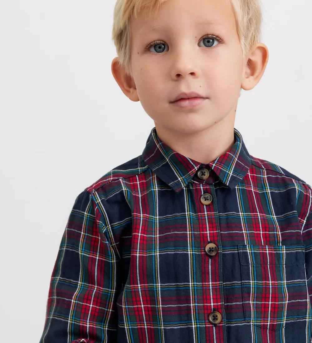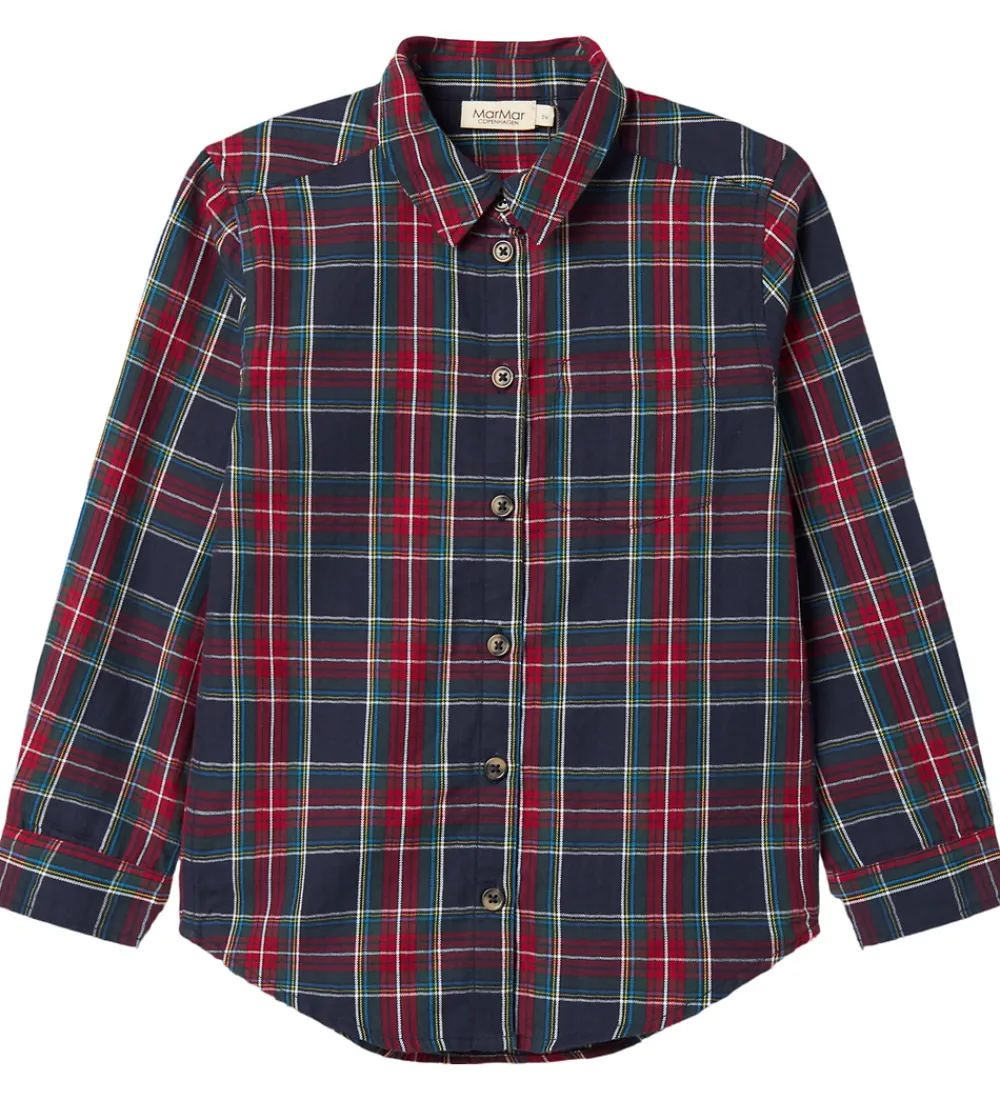 Stilfuld MarMar skjorte med et klassisk ternet mønster i dybe nuancer af rød, blå og grøn. Skjorten har lange ærmer og en traditionel krave. Knappes fortil med mørke knapper for et elegant look. MarMar skjorten er velegnet til forskellige anledninger med sin tidløse design.