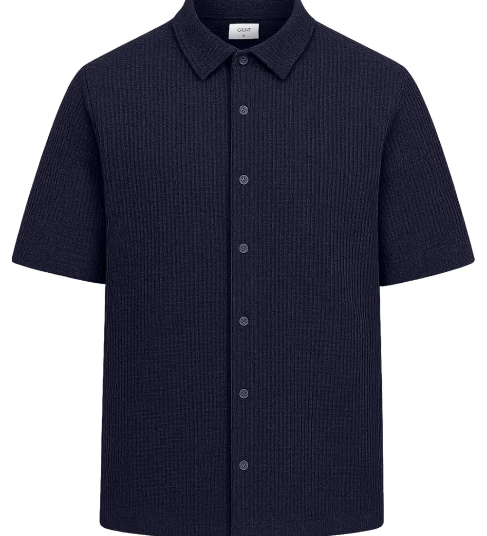 Elegant Grunt skjorte i en dyb navyblå med en vaflet struktur. Skjorten har et klassisk design, perfekt til en stilren garderobe.