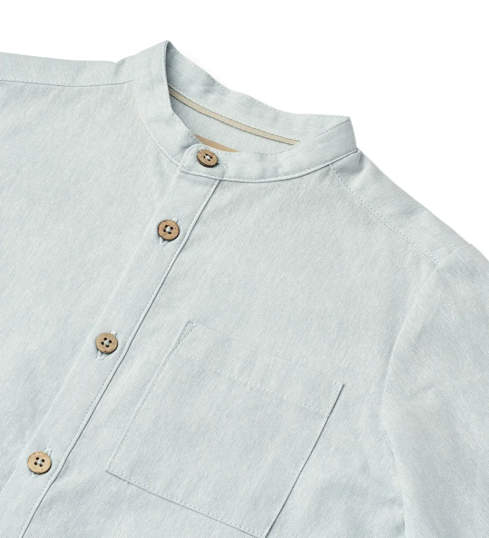Fin Wheat skjorte i lyseblå i en fastvævet kvalitet med knaplukning foran og en praktisk lomme på brystet. Skjorten har lange ærmer, der giver et stilrent og klassisk udtryk.
