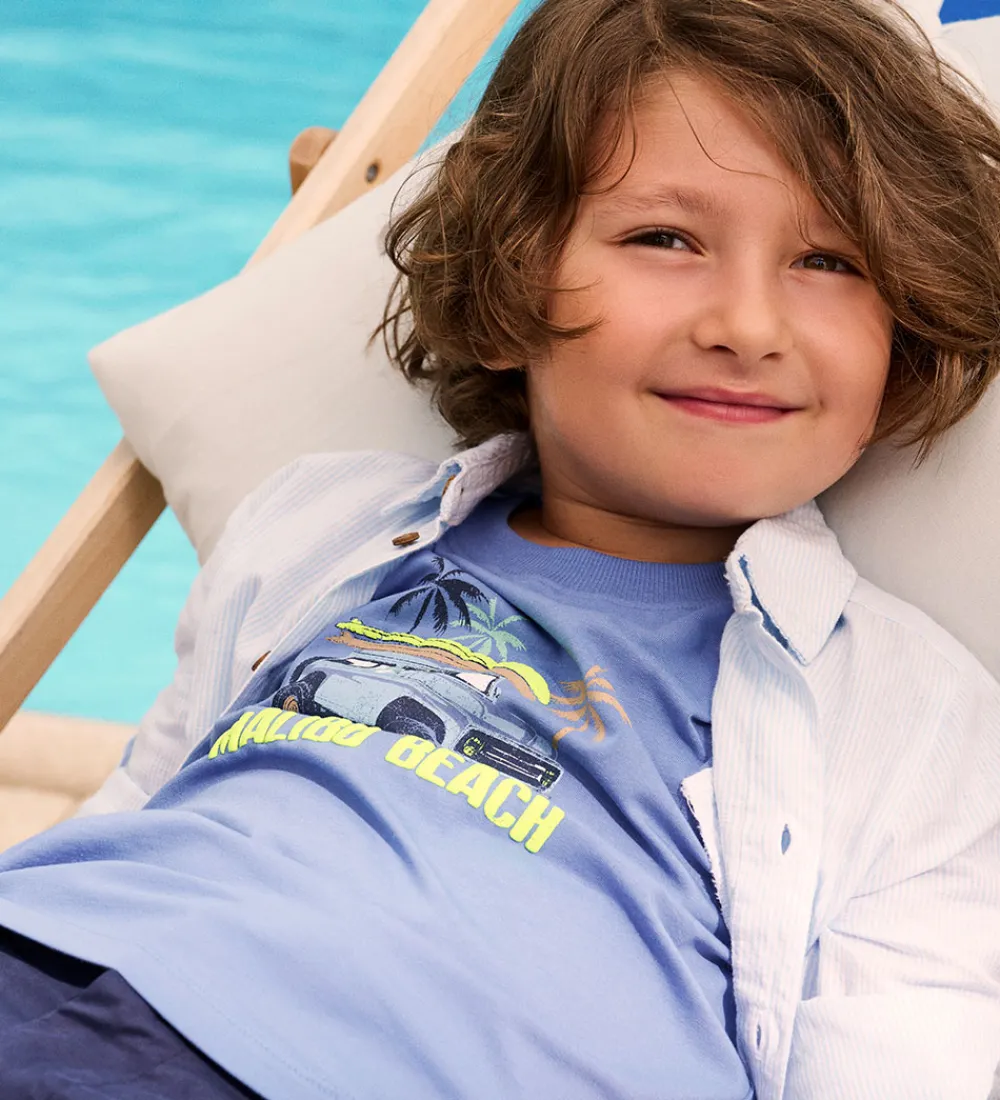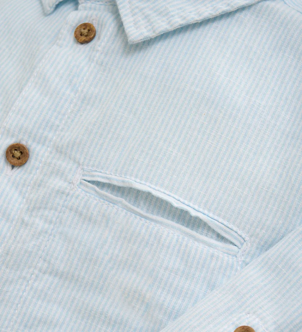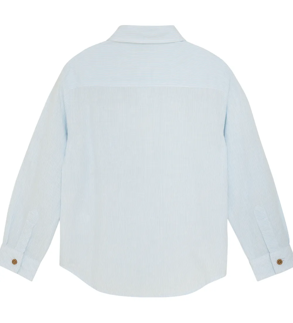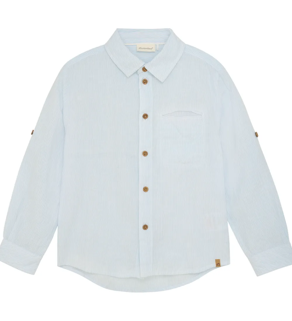 Flot skjorte fra Minymo i en blød lyseblå nuance med fine diskrete striber. Skjorten har en klassisk krave og lange ærmer med manchetknapper.