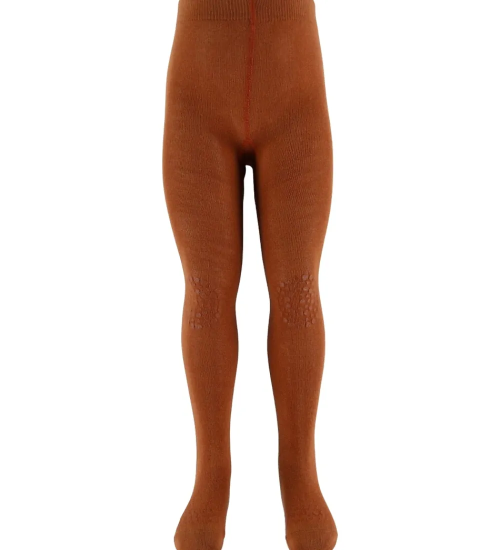 Flotte GoBabyGo skridsikre strømpebukser i brun med dutter af plastisol.