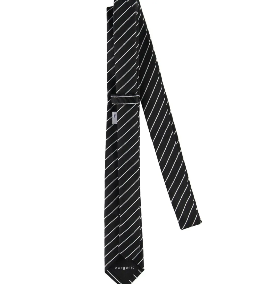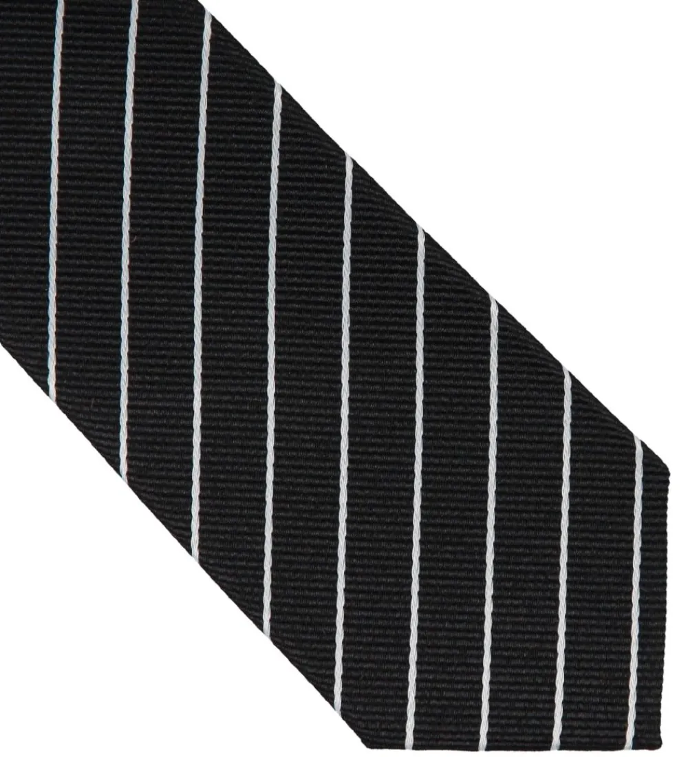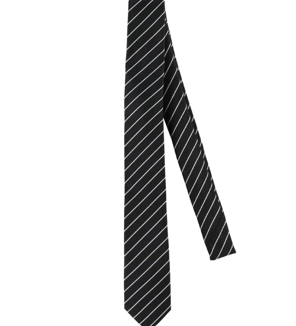 Flot Grunt slips i sort med smalle striber i hvid, lavet i en glatvævet kvalitet.