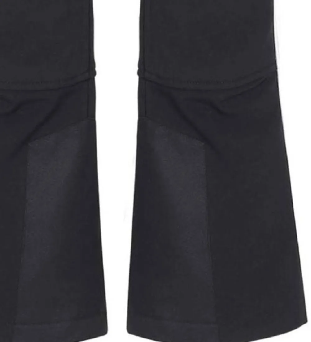 Dejlige Molo softshellbukser i ensartet sort med en firkantet logorefleks nederst på højre ben bagtil.