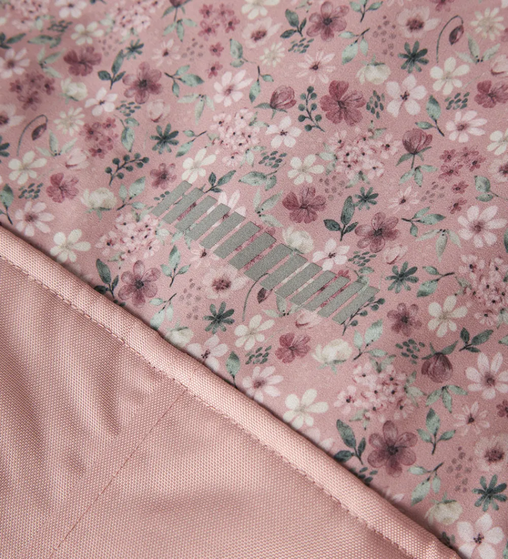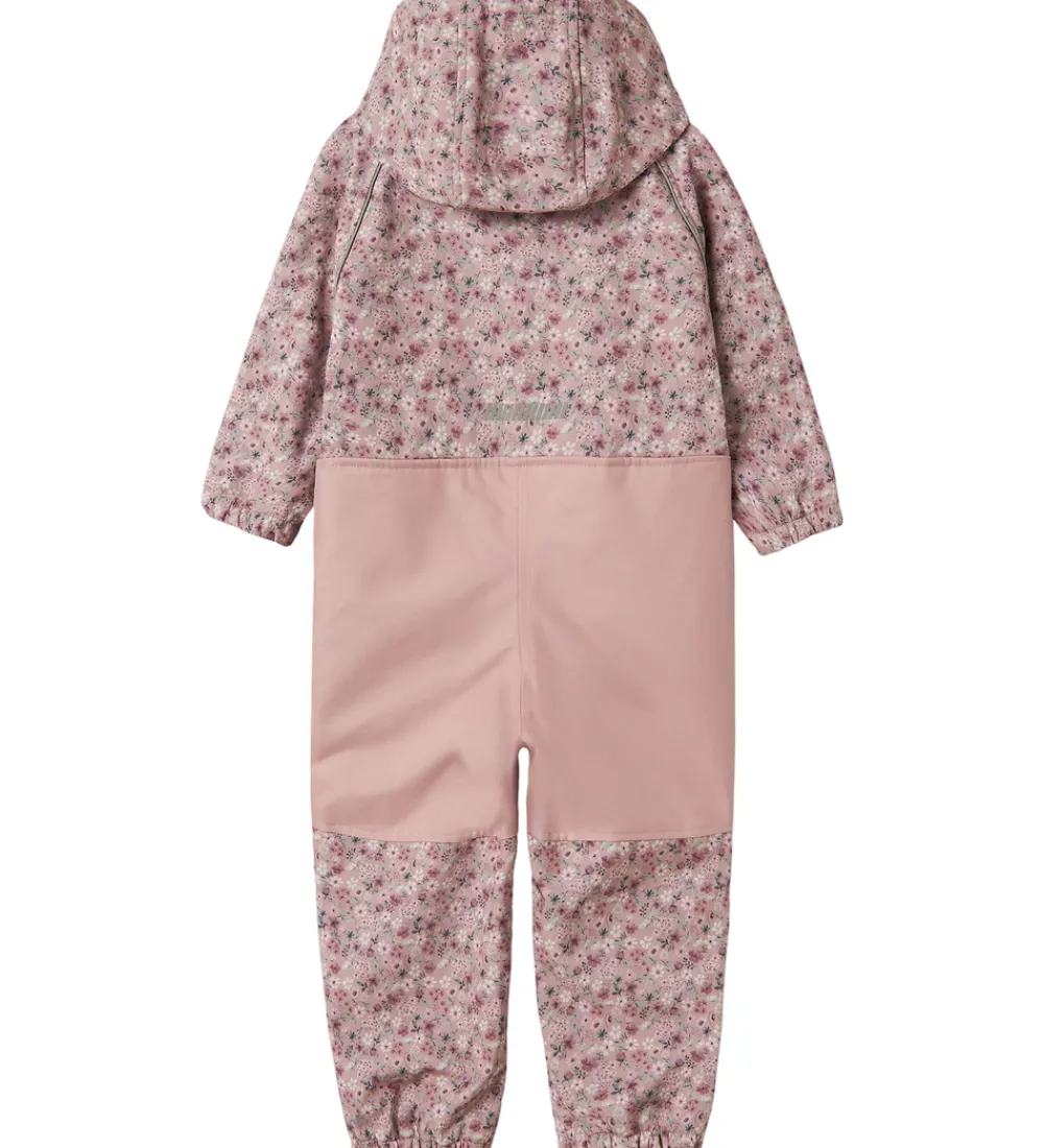 Dejlig Name It softshelldragt i støvet rosa med et smukt alloverblomsterprint.