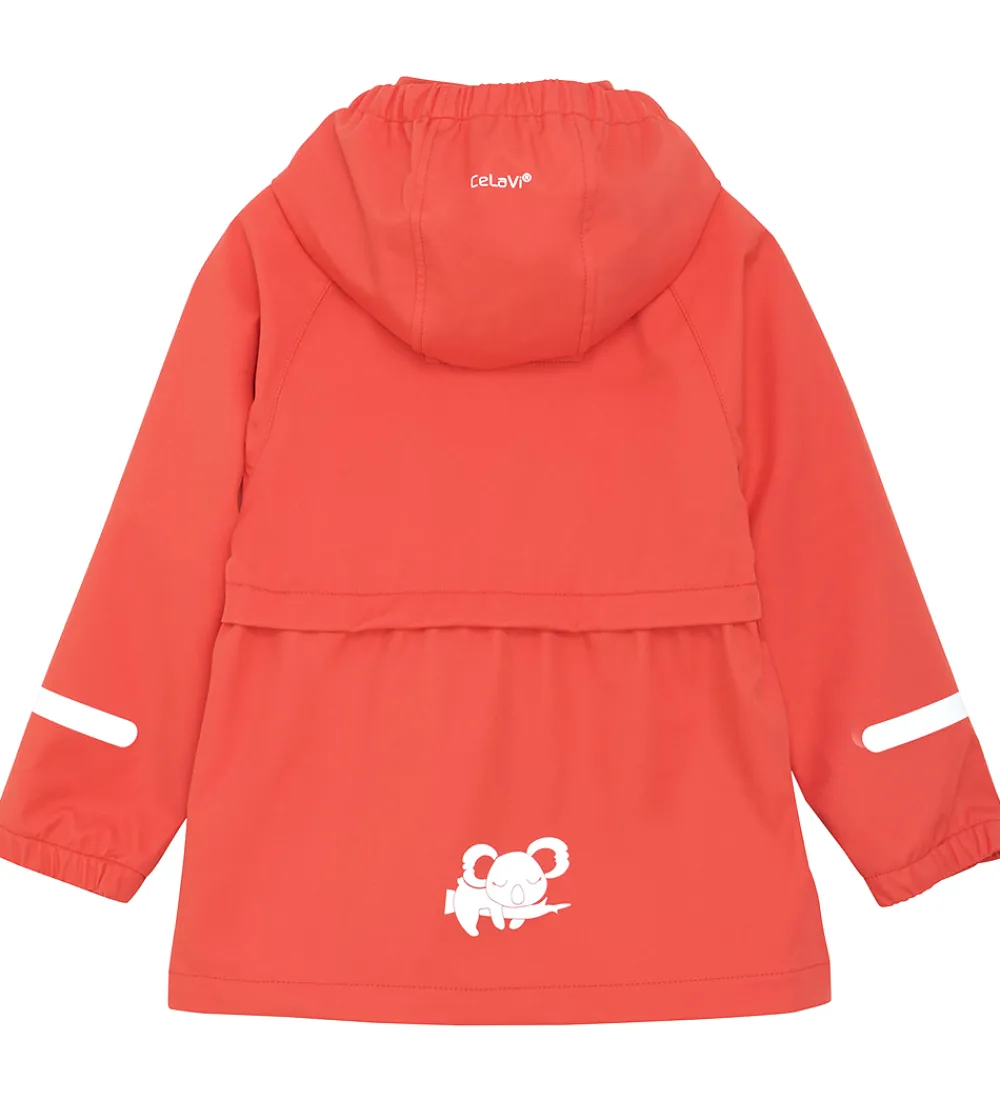Yderst på ærmerne er der praktiske refleksstriber, og nederst på ryggen er der et refleksprint formet som en koala.