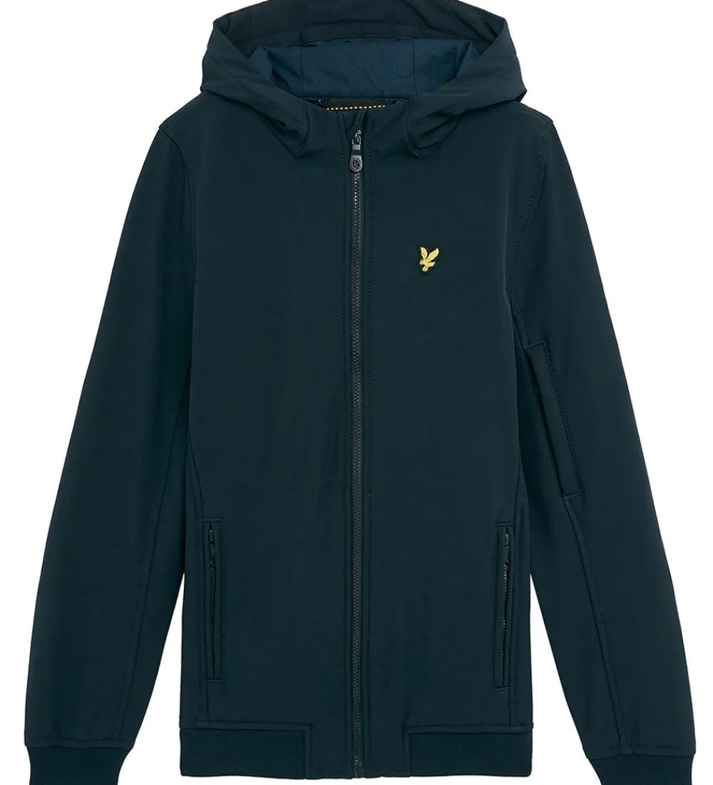Fin Lyle & Scott softshelljakke i navy med en logoapplikation på venstre bryst.