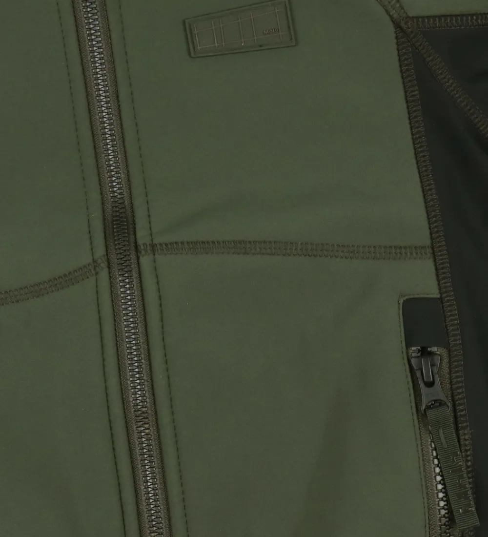Smart Molo softshelljakke i armygrøn med sorte detaljer.