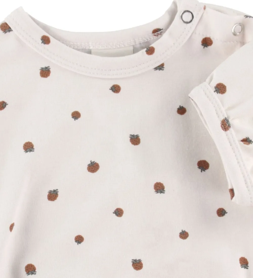 Sød Smallstuff sommerdragt i hvid med allover print af små, røde jordbær.