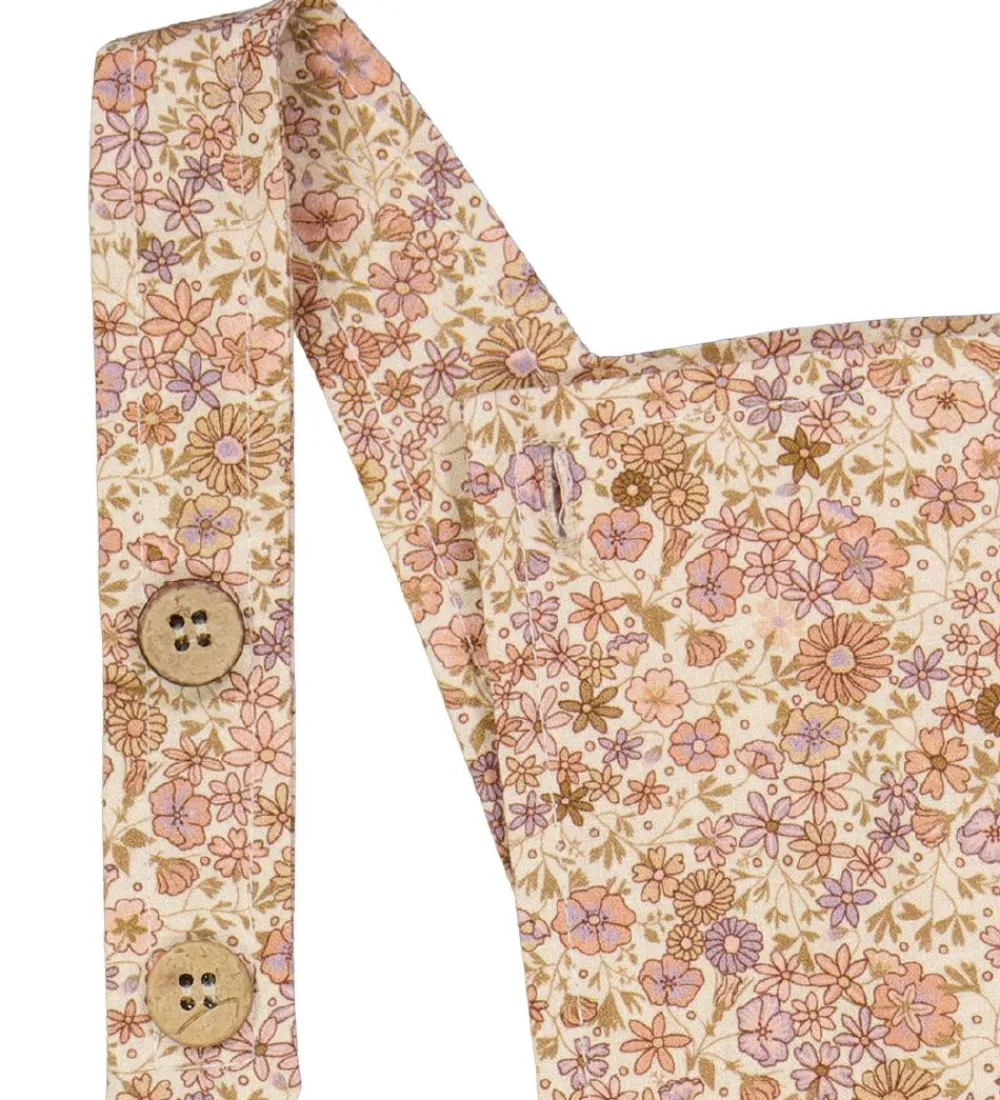 Wheat sommerdragten er uden ærmer, og har justerbare skulderstropper med to indstillinger. I taljen er der en god elastikkant og sommerdragten kan åbnes mellem benene, med praktiske trykknapper. I benåbningerne er der smalle elastikkanter og sommerdragten er i en lækker bomuldskvalitet.