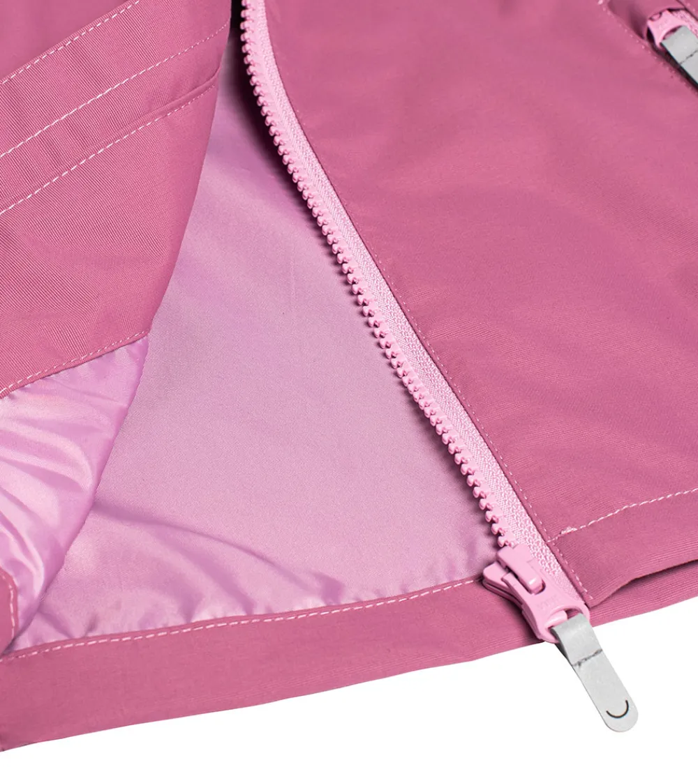 Lækker Viking sommerjakke blommelilla med reflekslogo og mange refleksdetaljer. Lynelåsene er i rosa.
