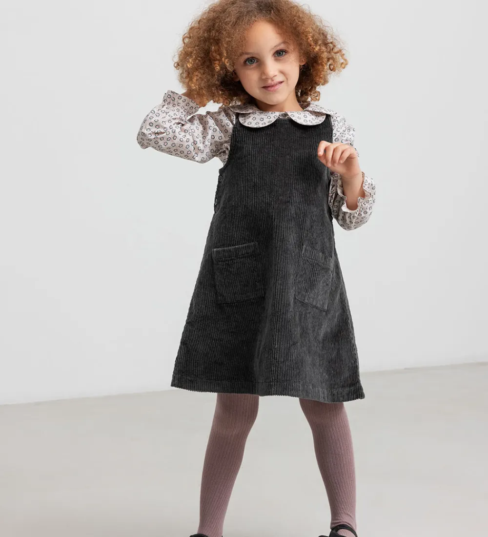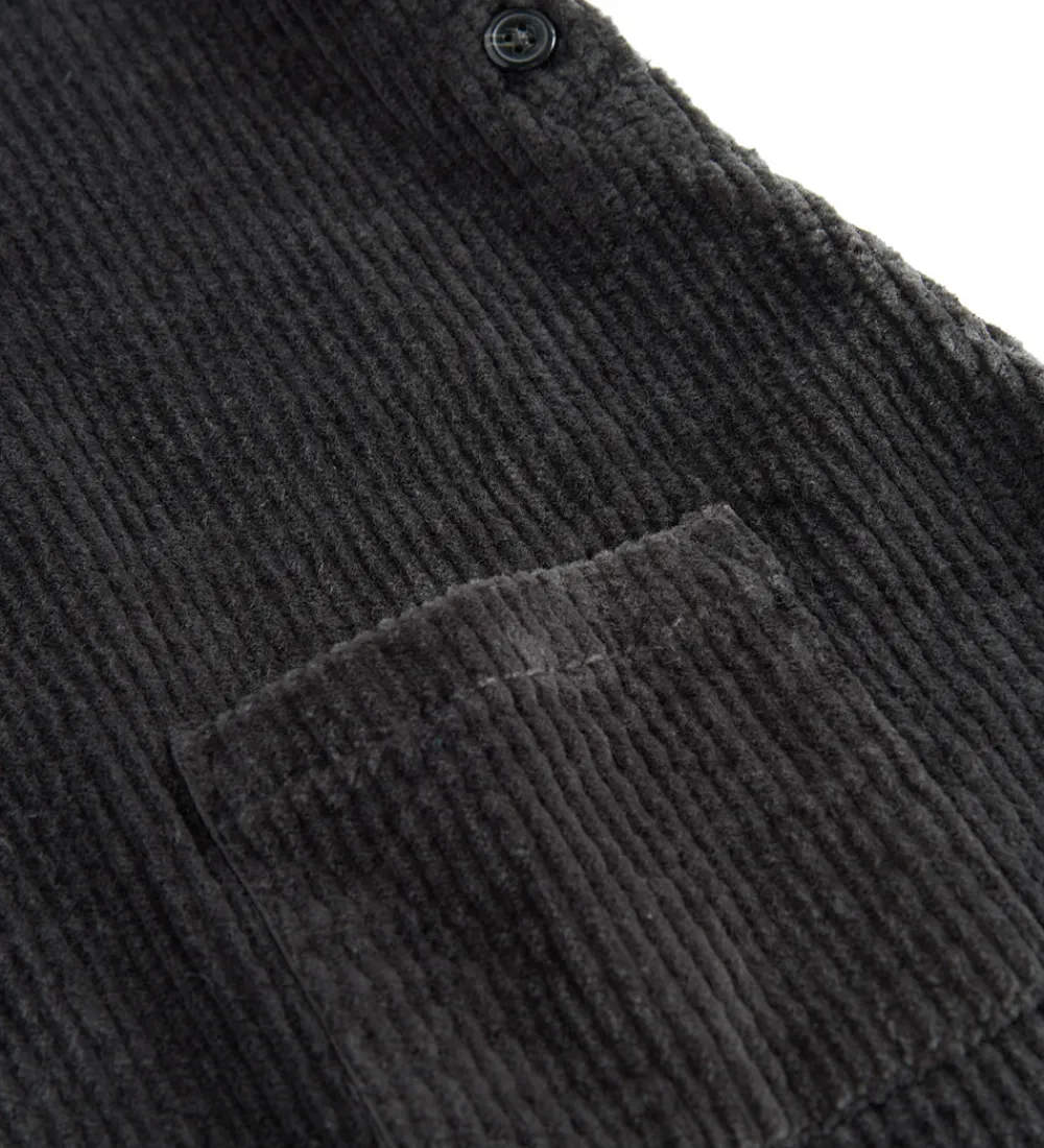 Stilren MarMar spencer i en dyb, mørkegrå farve. MarMar spenceren er lavet i blødt fløjl med en ærmeløs A-form og små knapper på siden. Foran har spenceren to praktiske lommer, der tilføjer et funktionelt element til designet.