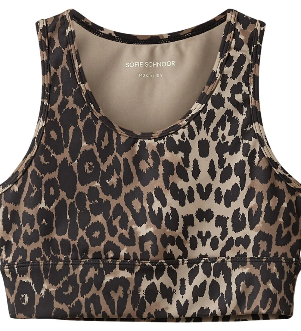 Elegant Sofie Schnoor sportstop med leopardprint i brune nuancer. Sofie Schnoor sportstoppen har brede stropper og en komfortabel pasform, der giver et stilfuldt look til enhver garderobe.