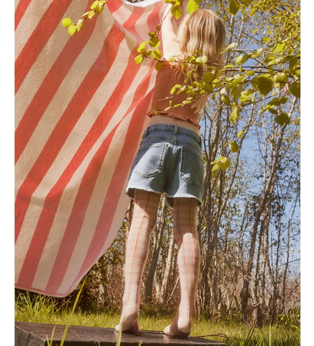 Smarte MP strømpebukser i rosa, med tern i rød og blå over det hele.
