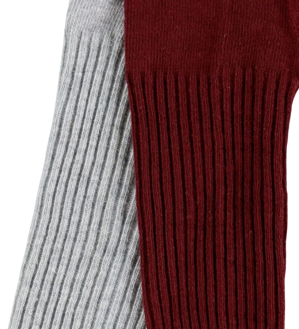 Praktiske Konges Sløjd strømpebukser i en 2-pak med en ensfarvet rød og en gråmeleret variant. Strømpebukserne har elastik i livet for en god pasform.