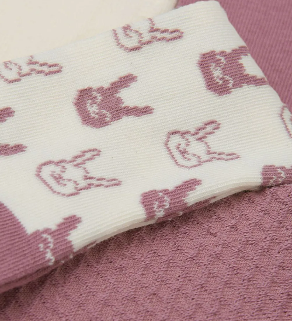 - Hvid med et allover print af kaniner i støvet rosa.