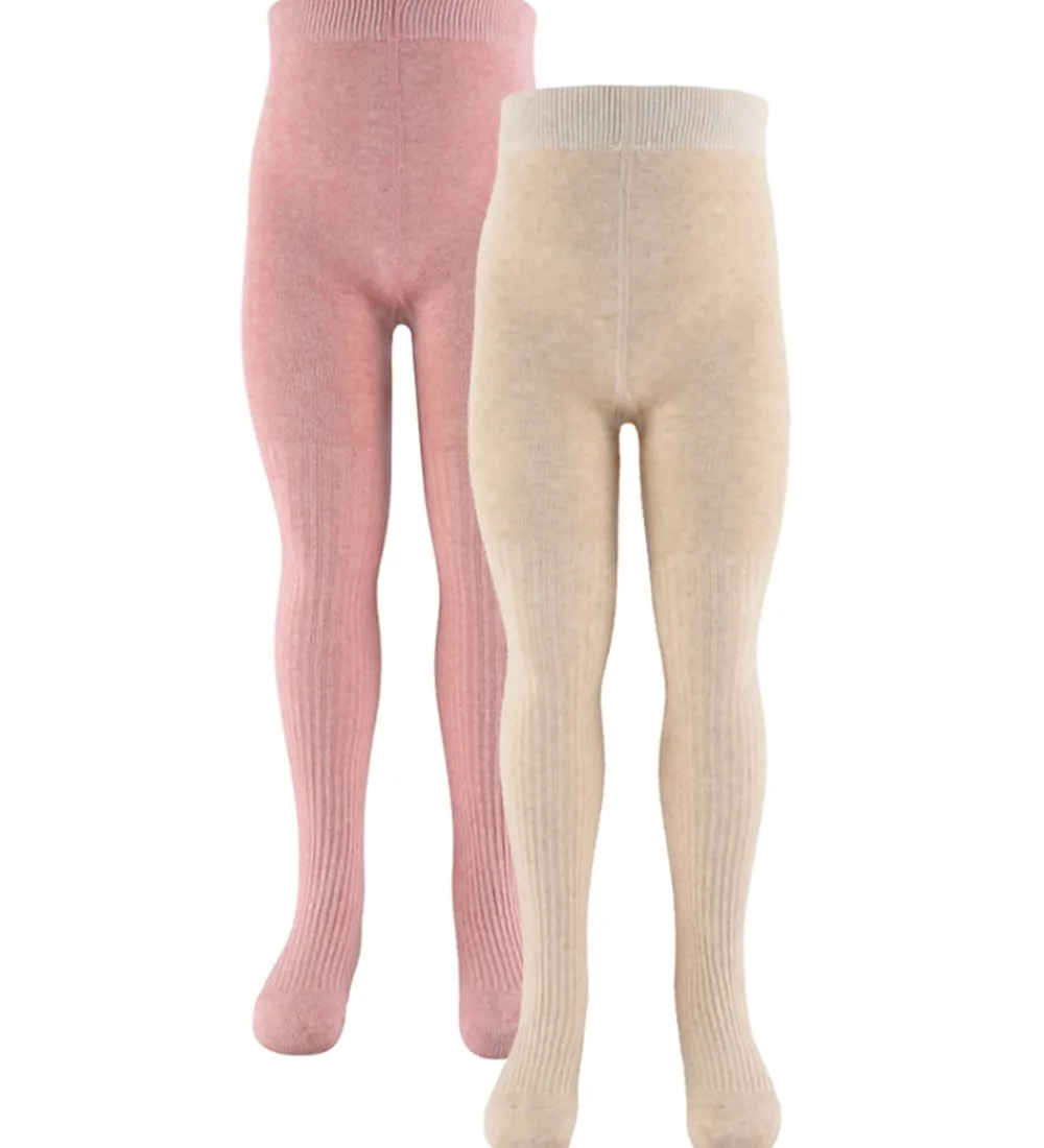 Behagelige strømpebukser fra Konges Sløjd i en 2-pak. Den ene par er i en blid, lyserød nuance, mens de andre er i en lysebeige farve, begge med ribstruktur. Disse strømpebukser fra Konges Sløjd er designet med elastik i livet for en passende pasform.