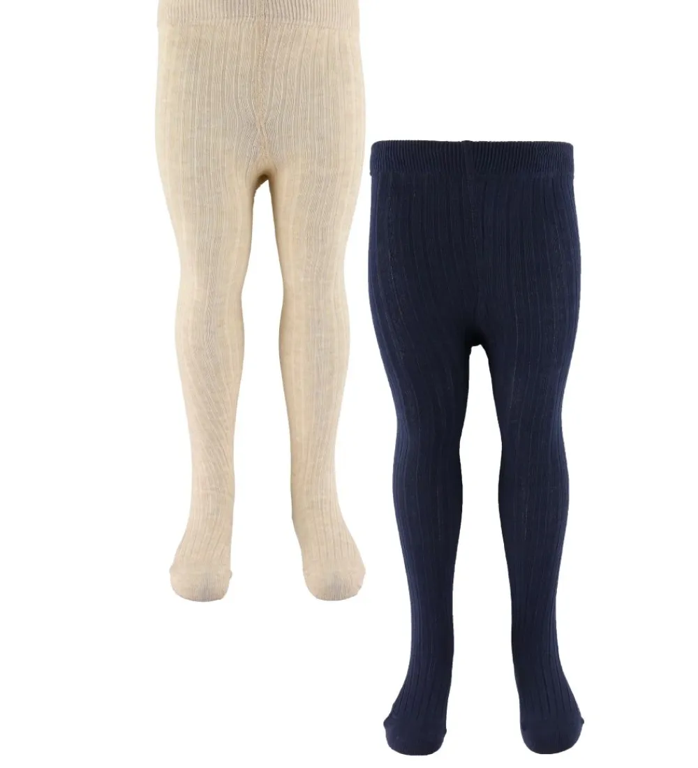 Fede Minymo strømpebukser solgt i en 2-pak i ensfarvet navy og meleret beige.