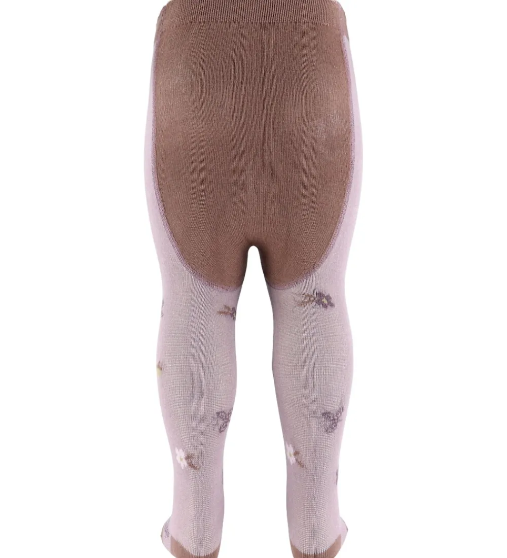 Fine Hust and Claire strømpebukser i en flot lilla nuance med et allover print af små, diskrete blomster, blade og agern.