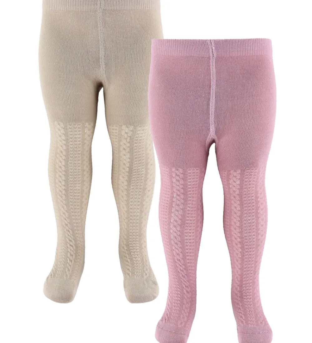 Fine Minymo strømpebukser solgt i en 2-pak, bestående af et par i beige og et par i rosa. Strømpebukserne har flot strukturstrik og en god elastik i taljen, som sikrer en behagelig pasform.