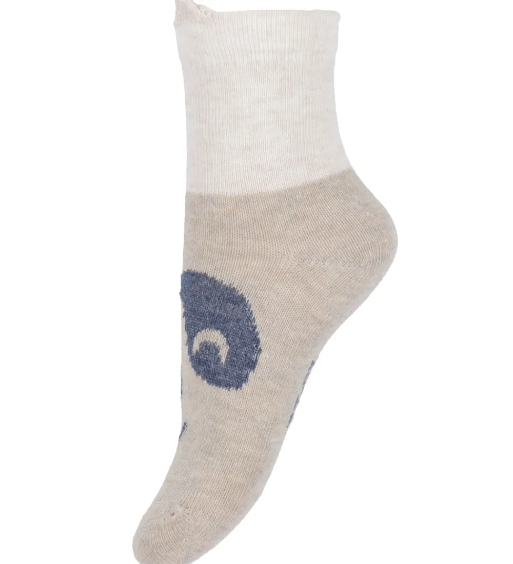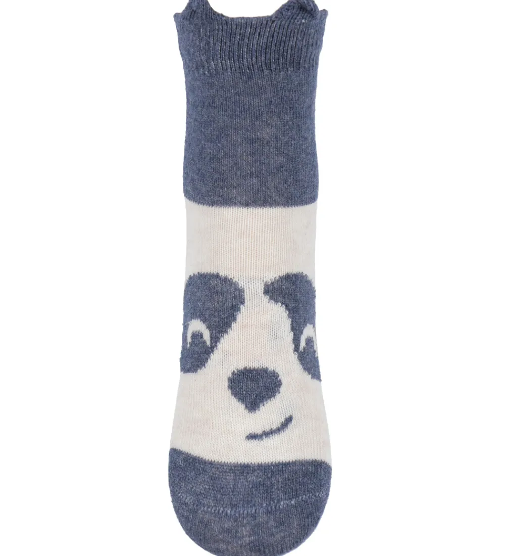 Charmerende Minymo strømper solgt i en 2-pak. Det ene par er beige med et pandamotiv, mens det andet par er cremefarvet og meleret navy med et pandamotiv.