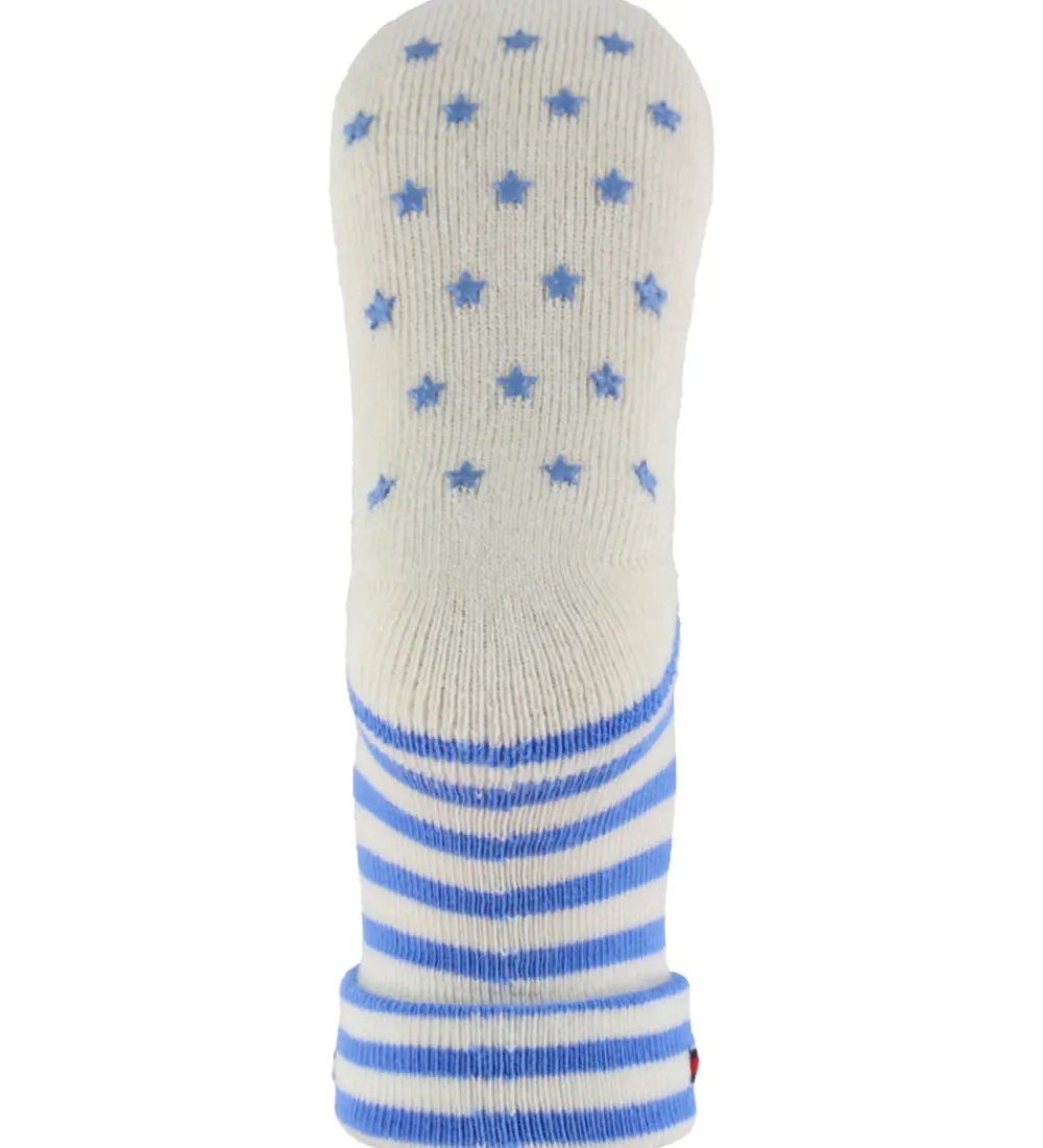 Strømperne har stjerneformede silikonedutter under fødderne, som giver et godt fodfæste.
