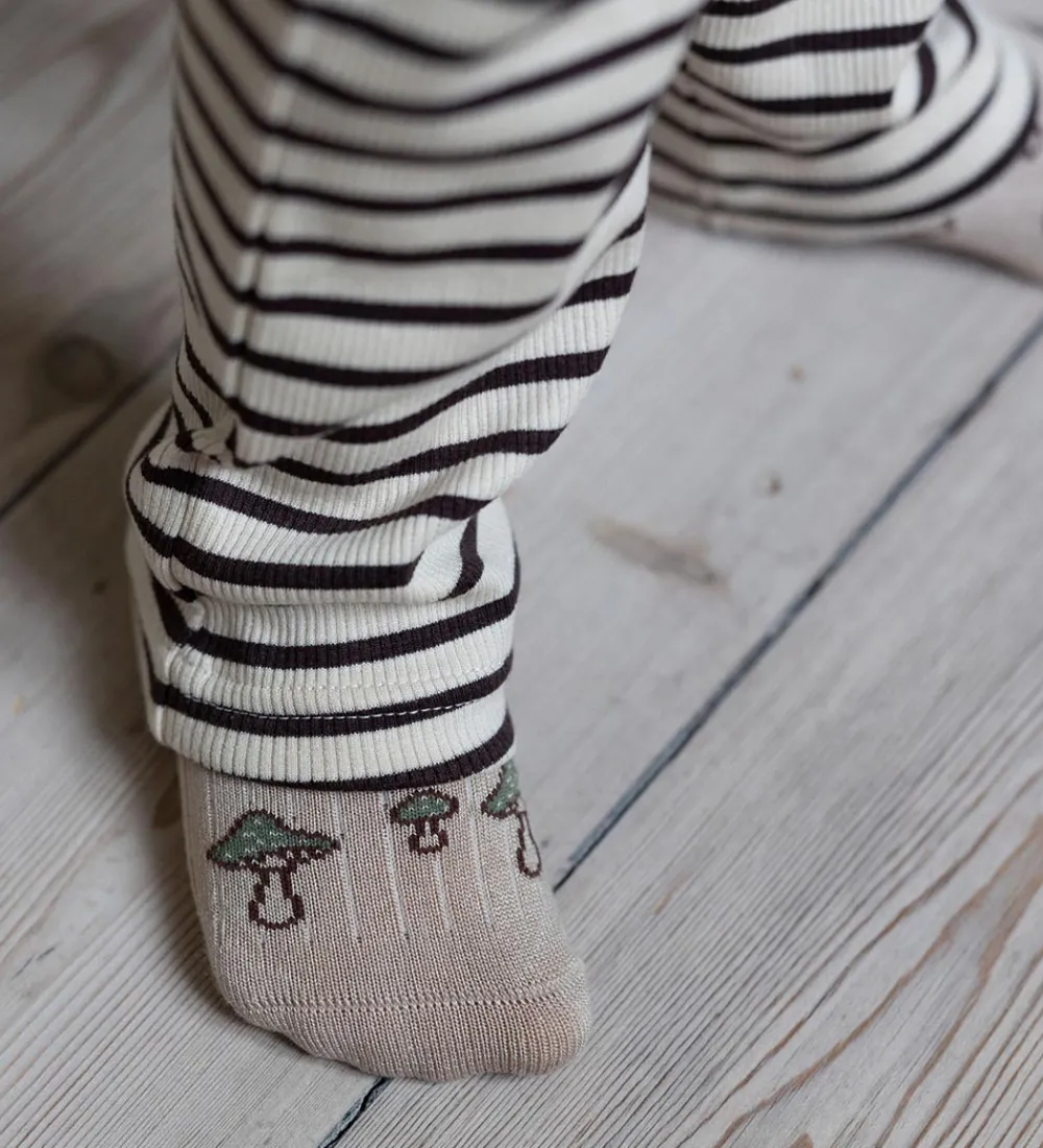 Attraktive strømper fra MiniPop i en 3-pak bestående af forskellige designs. MiniPop strømperne inkluderer et par med grønne og brune striber, et par i camouflageprint i nuancer af grøn og brun, samt et par med svampe- print på en lys baggrund. Hver strømpe har en behagelig ribkant øverst.