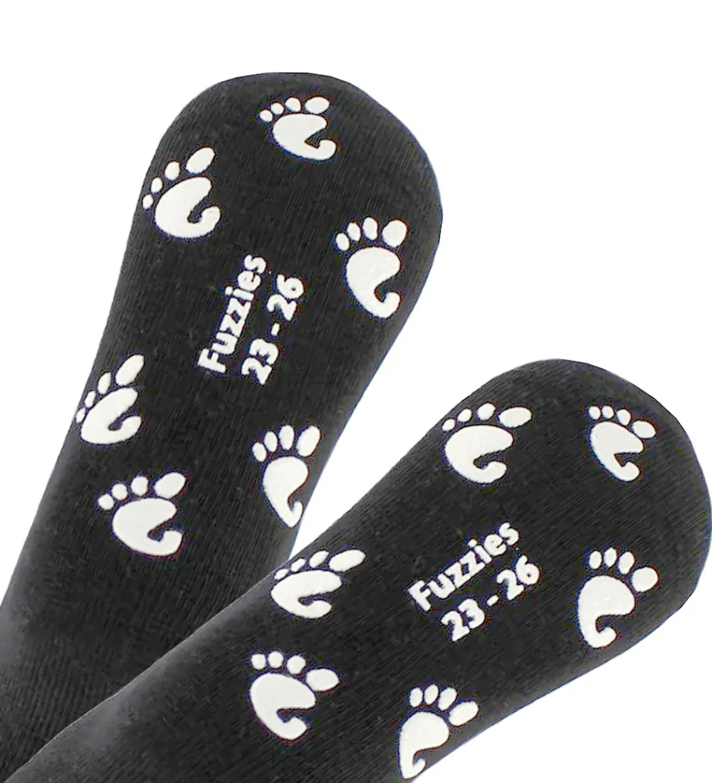 Skønne Fuzzies strømper i sort med skridsikre detaljer under foden.