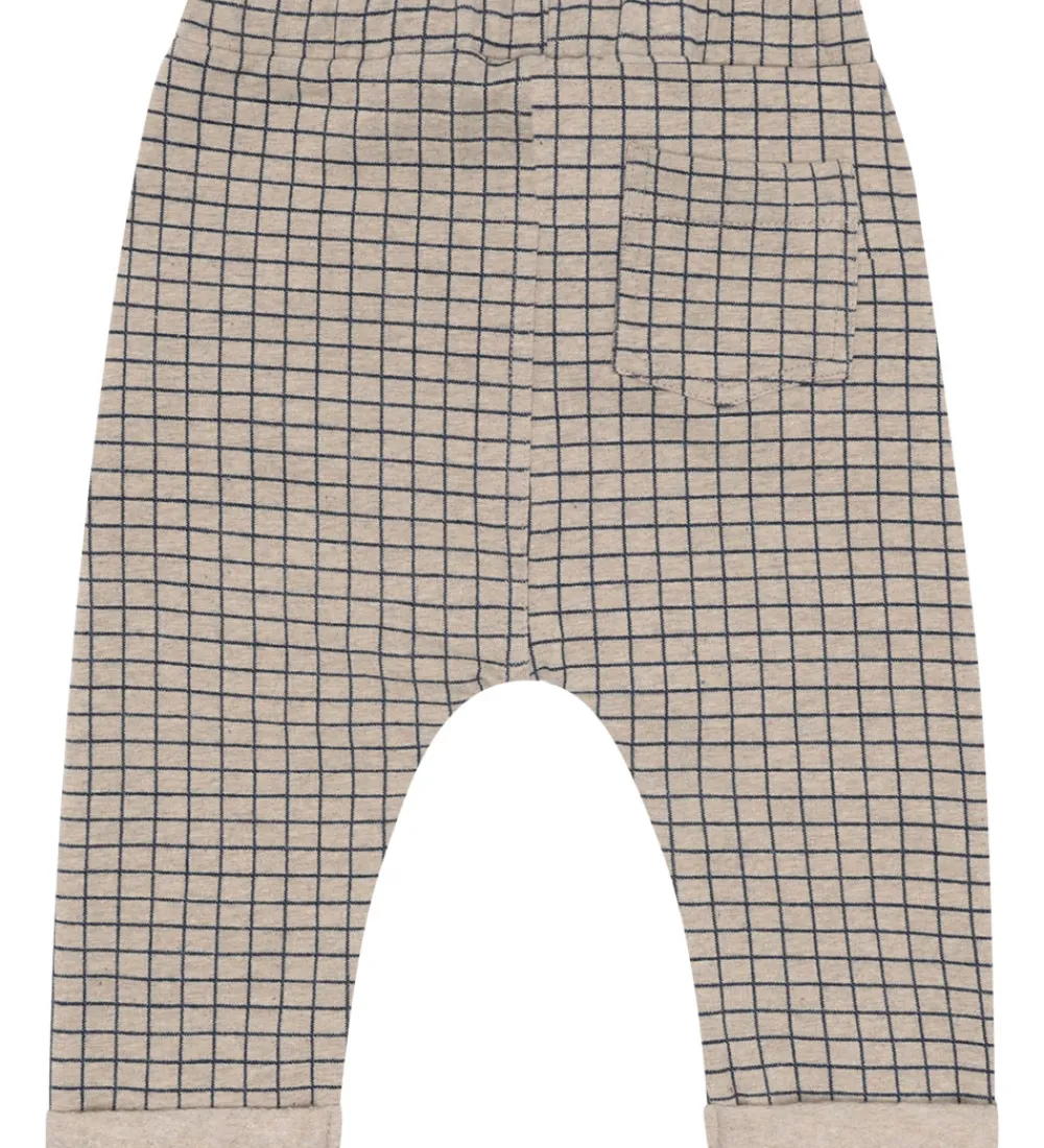 Flotte Hust and Claire sweatpants i beige med et navy, ternet mønster.