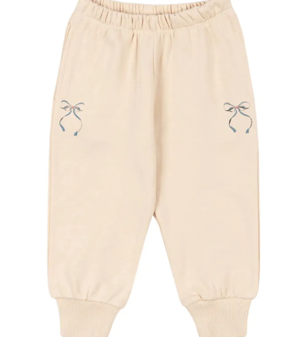 Elegante Konges Sløjd sweatpants i en lys cremefarve med fine, diskrete sløjfedetaljer ved lommerne.