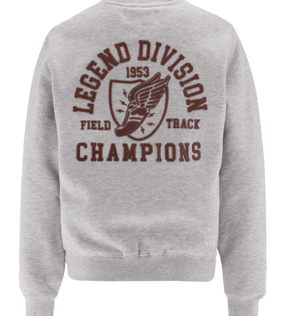 Lækker Hound sweatshirt i grå meleret, og på ryggen er der et stort, brunt tekstprint. Hound sweatshirten har lange ærmer og brede ribkanter, og på indersiden er der blødt, børstet bomuld.