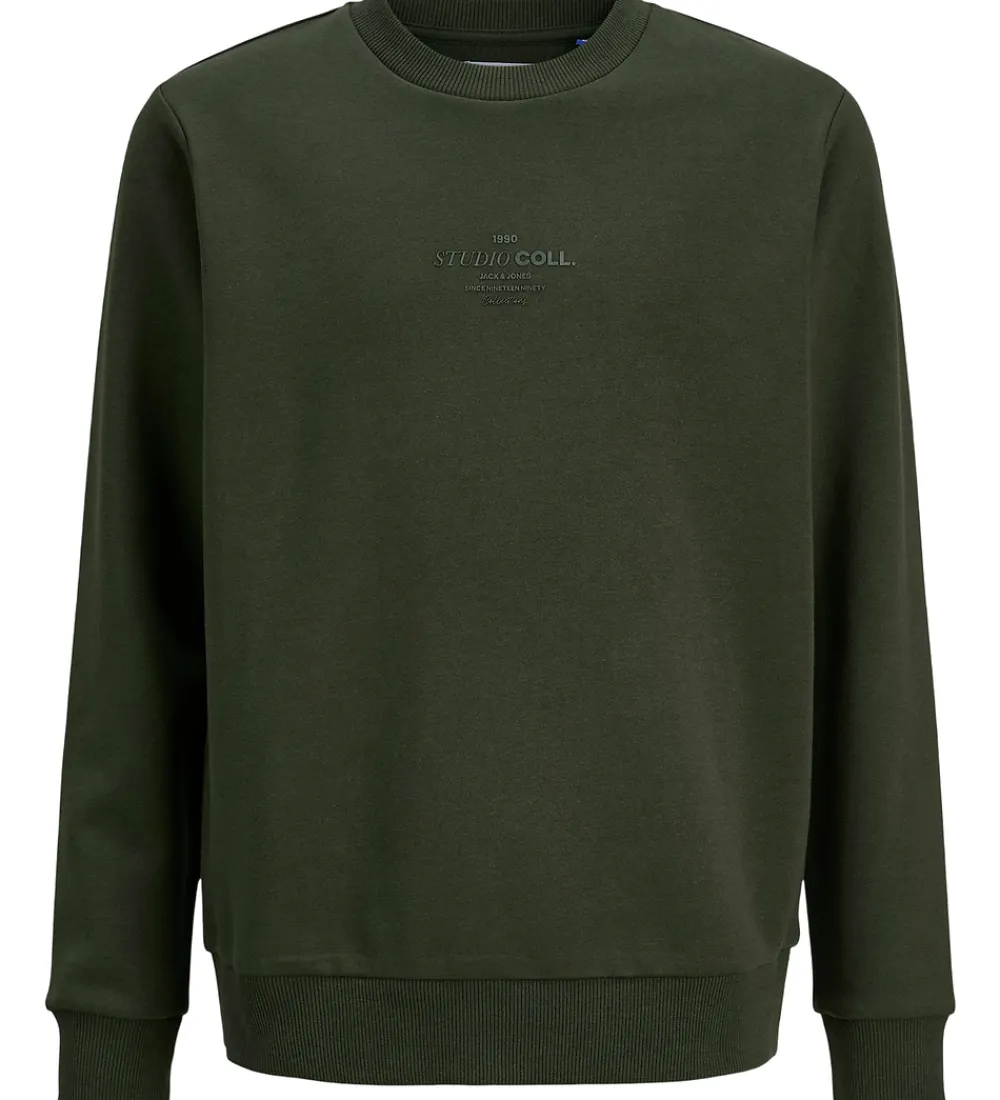 Elegant Jack & Jones sweatshirt i en mørkegrøn nuance. Sweatshirten har rund hals samt lange ærmer, der sikrer et afslappet udtryk. Jack & Jones designet har en diskret præget tekst på brystet, som tilføjer en stilfuld detalje.